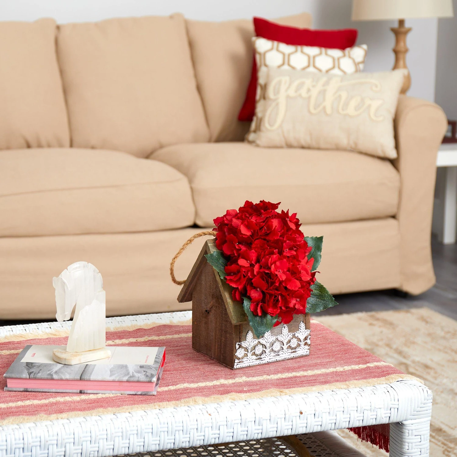 10” Hydrangea Artificial Arrangement In Hanging Floral Design House Planter