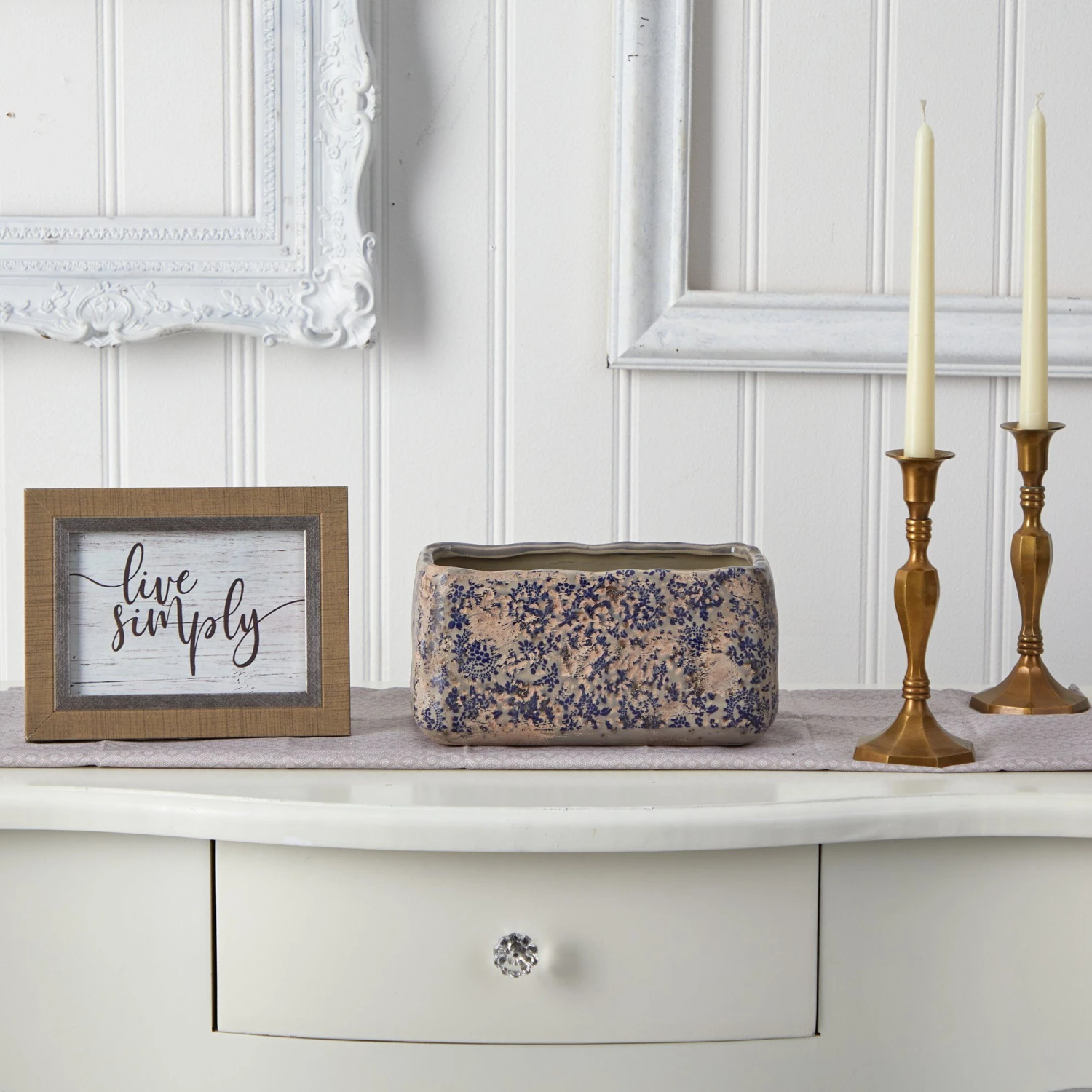 Arrange your fauxbolous flowers in this floral print rectangular planter (set of 1). The vintage ceramic planter has a homey feel with its palette of flowers against a rugged backdrop. DIY and have fun mix-matching for a country chic look that delivers that fresh farm to home style. No drainage holes and indoor use only.
