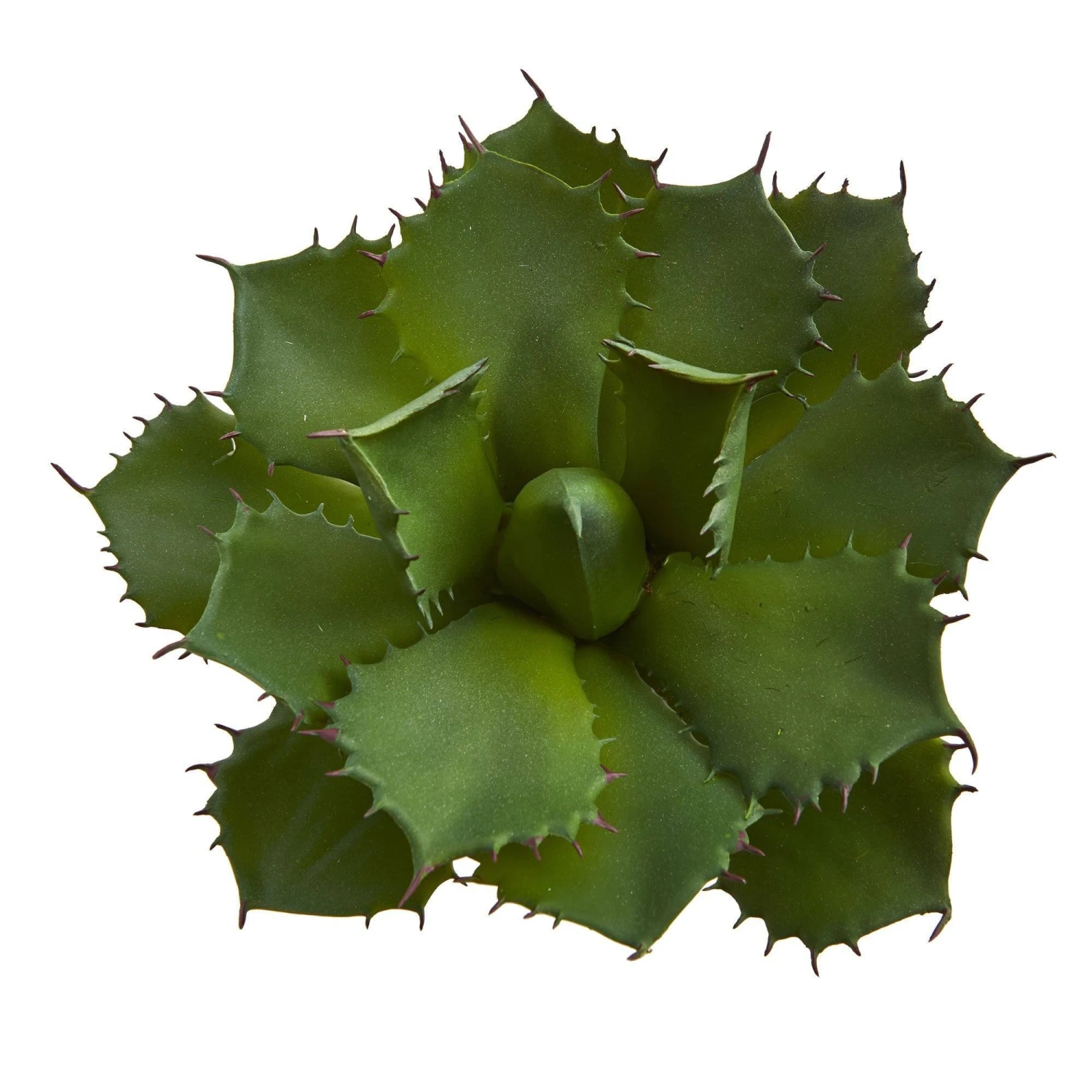 Thick, dark green leaves with spiky edges are shooting off from the short stem of this succulent pick artificial plant. Use this set of two to add some desert glamour to an existing artificial floral arrangement or succulent plant in your living room, kitchen or formal dining room.