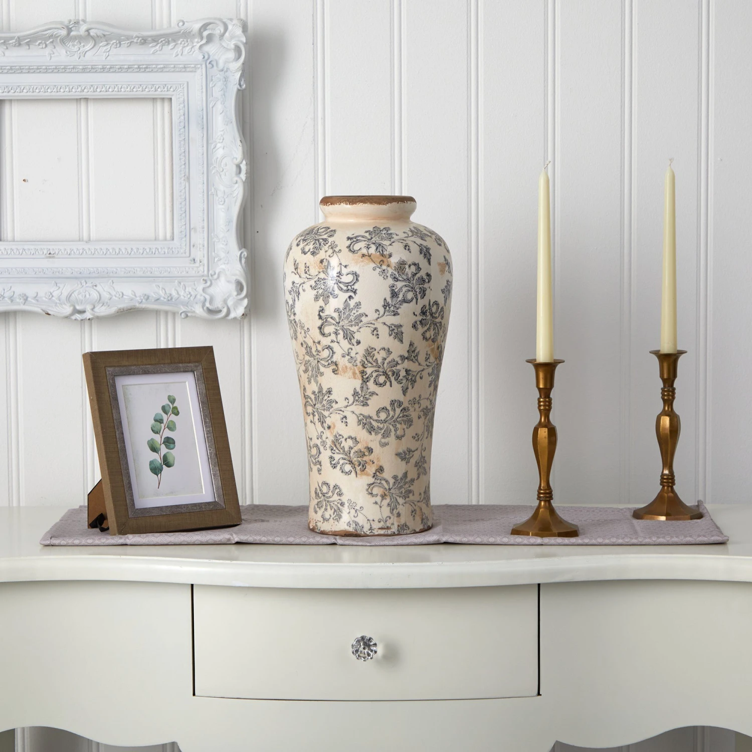 16” Tuscan Ceramic Floral Scroll Urn Vase
