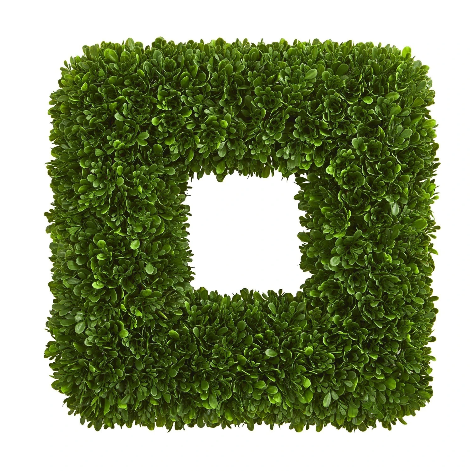 This 17-inch tea leaf artificial wreath comes arranged in a unique square shape that is sure to catch the eye. With its UV-resistant full foliage, it can be added to your front door with faux flowers for every season. However, it can be used as centerpiece as well for your dining room table or kitchen island to bring a realistic, colorful feature of the outdoors inside.