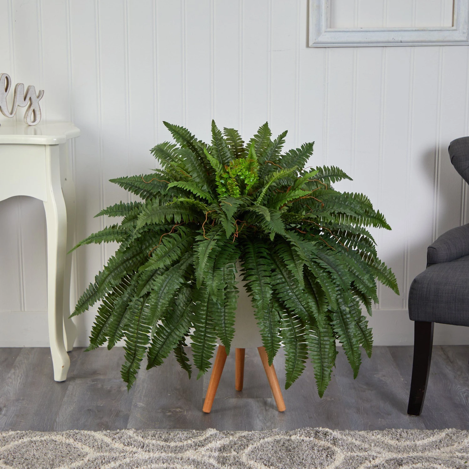 2.5’ Boston Fern Artificial Plant In White Planter With Legs