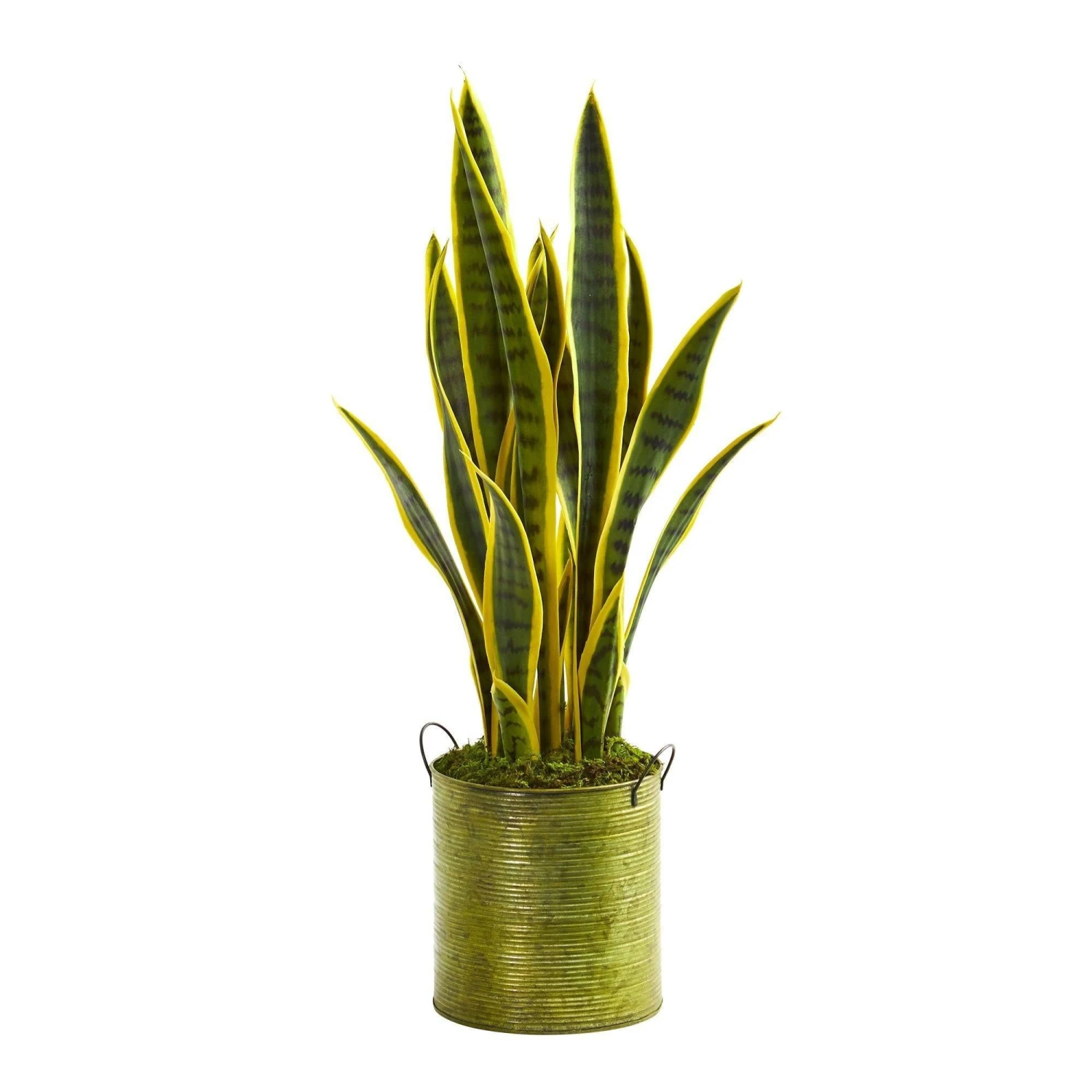 2’ Sansevieria Artificial Plant In Metal Green Planter