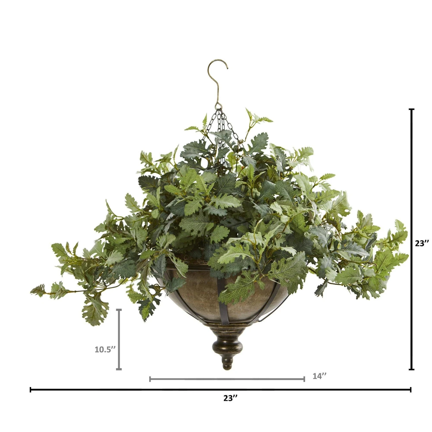 Incorporate realistic greenery into your everyday surroundings with this hanging artificial dusty miller plant boasting soft, variegated colors and realistic looking details throughout its leaves. Reaching 23” long from a hanging bowl, it would provide instant freshness to an empty window or corner.