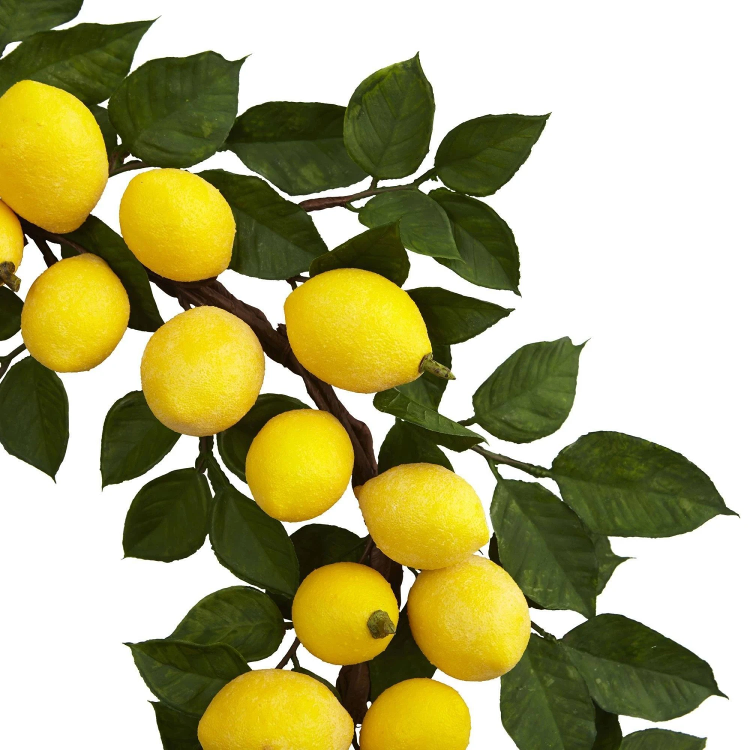 Sunny yellow lemons with rich, green leaves embellish this spring and summertime wreath. Handcrafted with artificial materials, this European inspired wreath brings a burst of color to your entryway or fireplace mantel. Pair with decorative burlap and delicate lace for a rustic, farmhouse look.