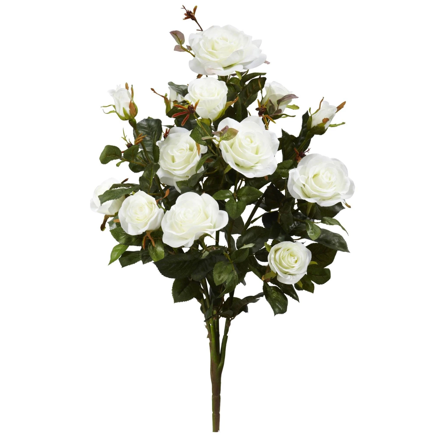 The 28-inch artificial garden rose bush is suitable as both a gift or indoor decorative piece. Coming in a set of two, this artificial plant can be situated in a clear vase and placed on a low bench or built in wall shelf alongside other rose bushes to create a gorgeous indoor garden. Additionally, they’ll make the perfect centerpiece for a dining room table.