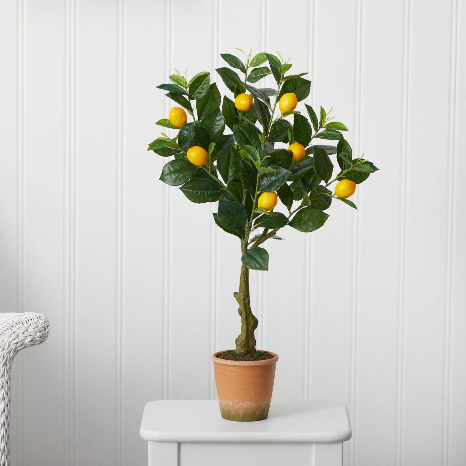 When life gives you lemons they probably came from this artificial lemon tree. We’re kidding, but this is the second best thing. With lush green leaves, accented by faux yellow lemons, highlight any space that seems a bit bitter. Standing 28″ from a decorative planter, this cute faux lemon tree is perfect for compact spaces. Place in your breakfast nook, kitchen, or dinning room for that fresh to the farm look. Makes a great look during the spring and summer seasons.”