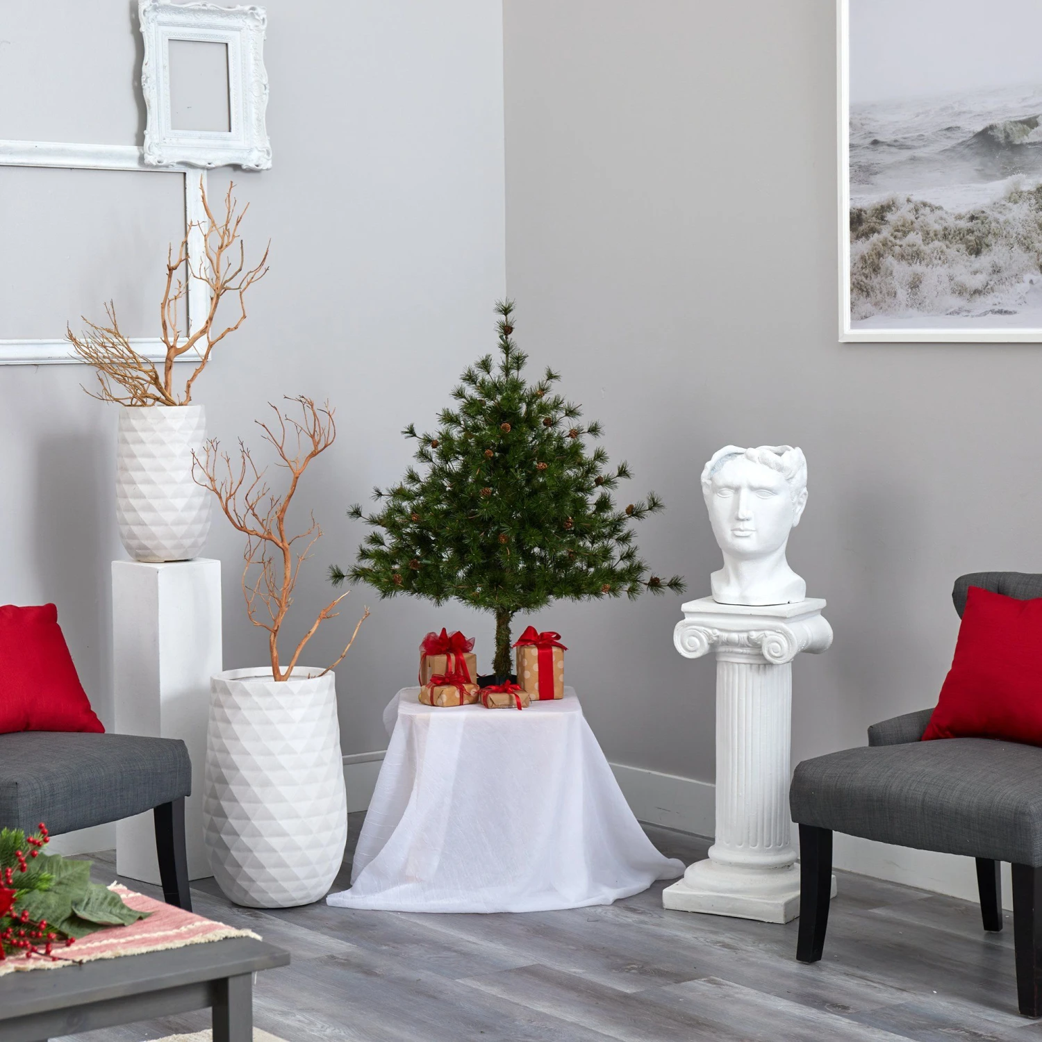 3’ Colorado Mountain Pine Artificial Christmas Tree With 50 Lights. 171 Branches And Pine Cones