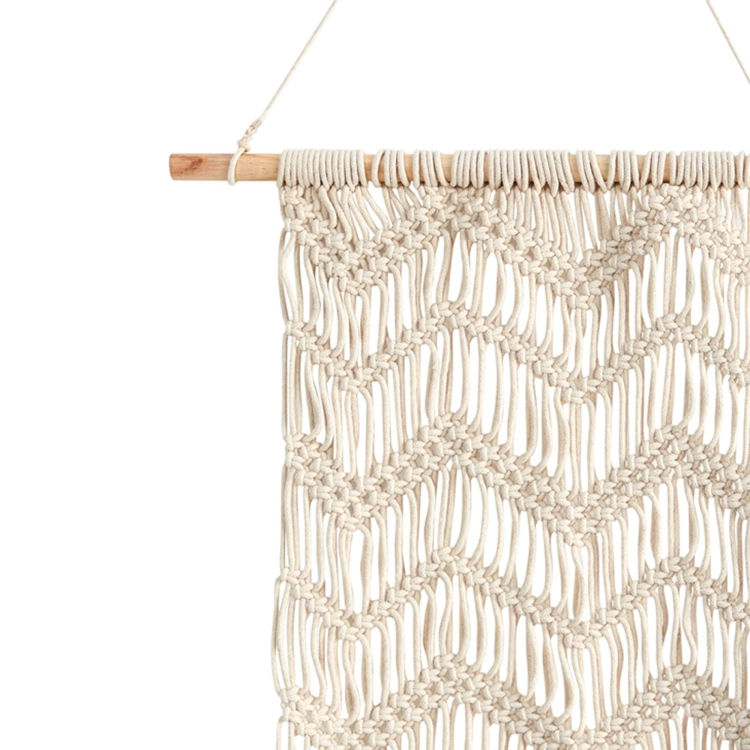Make your boho dreams come true with this Handmade Macramé Wall Hanging Décor. Handcrafted from fine materials by artisans, the whimsical design contrasts with the rustic, wooden accent it hangs from. With dimensions of 3.5′ X 1.5′, easily hang on any bare wall. Enhance your style decor today by adding it above your bed.