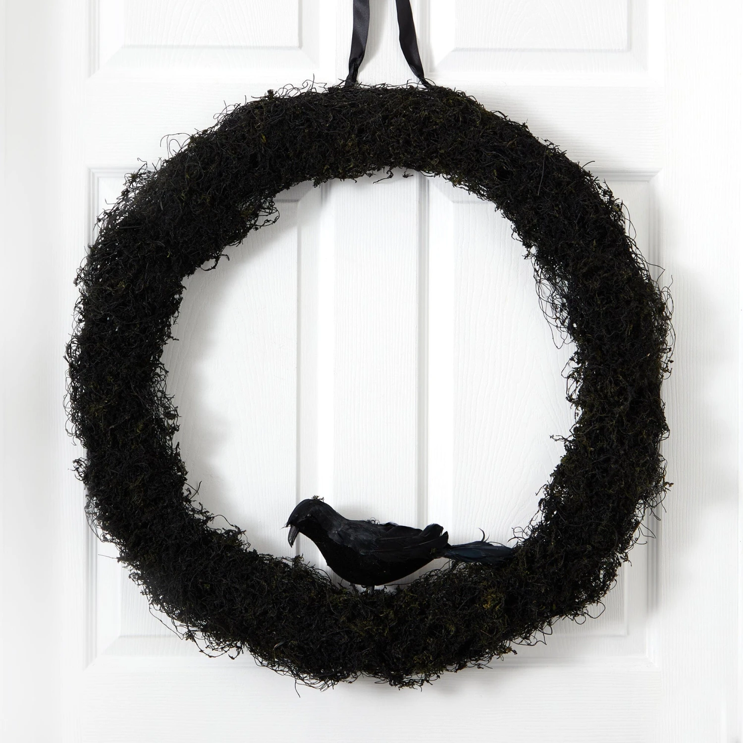 Are you looking to get spooky this Halloween? Wish to scare all the ghosts? This raven inspired black wreath, will add a festive, yet sleek touch to any room. Like a costume, dress any area of your home by darkening spaces in need of a little scary touch. With a diameter of 30″ house in any area that needs a festive touch.