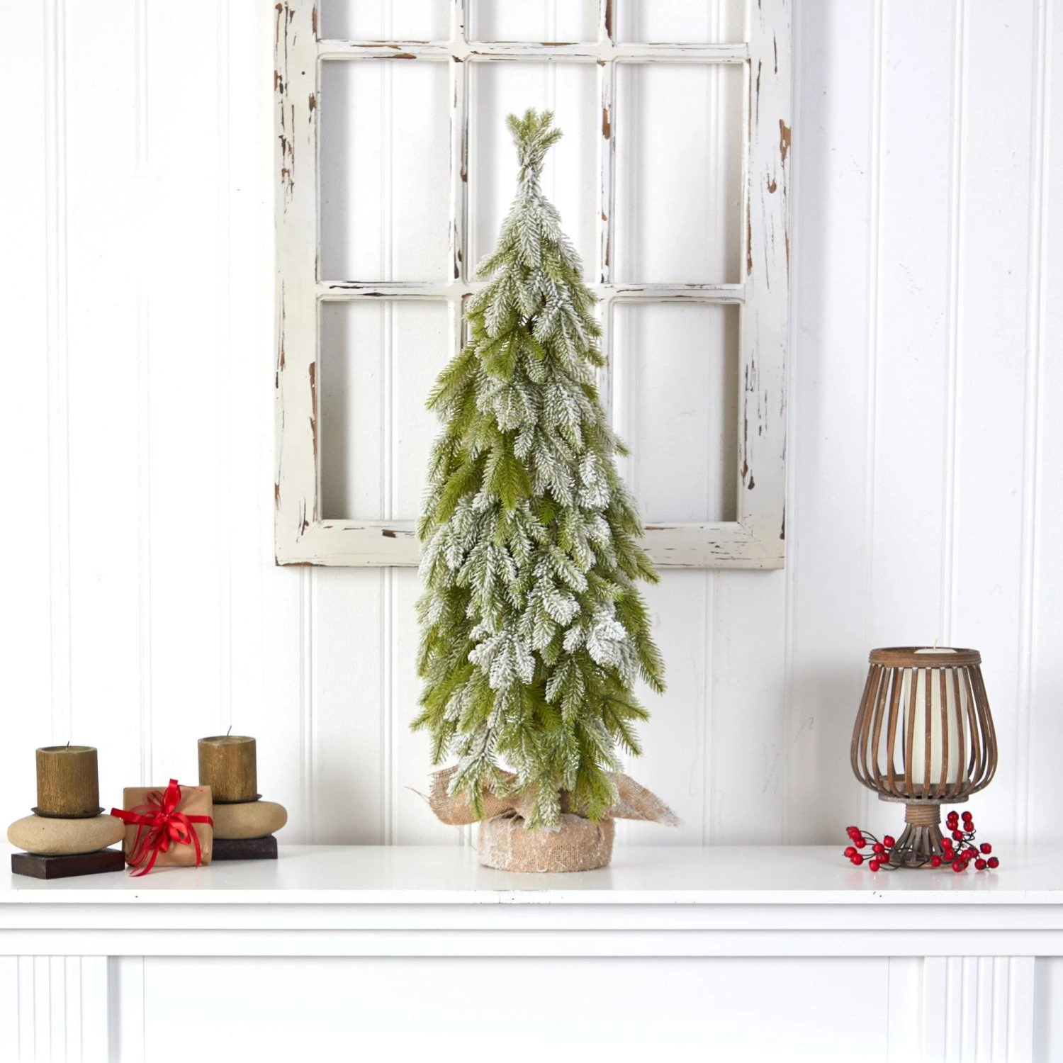 35” Snow Flocked Down Swept Holiday Artificial Christmas Tree In Burlap Base