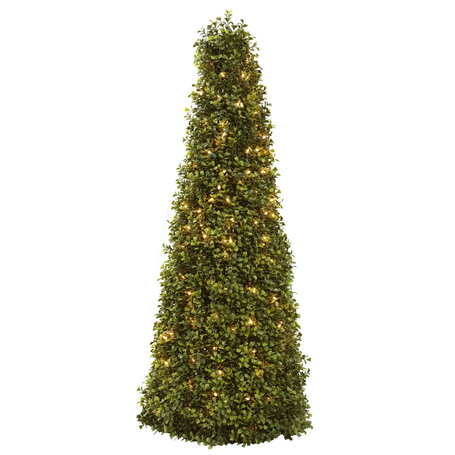 One of our favorite shrubs is the boxwood. That’s because it’s the ideal “shaping” plant. With its tiny, lush evergreen leaves densely surrounding its supporting twigs, the Boxwood conforms to almost any sculpted shape. And in this case, we’ve chosen a cone shape. At 39” in height, it stands tall and proud. But wait – there’s a surprise – it comes complete with lights to delight all viewers. Makes an ideal addition to any room or office, and makes a great gift as well.