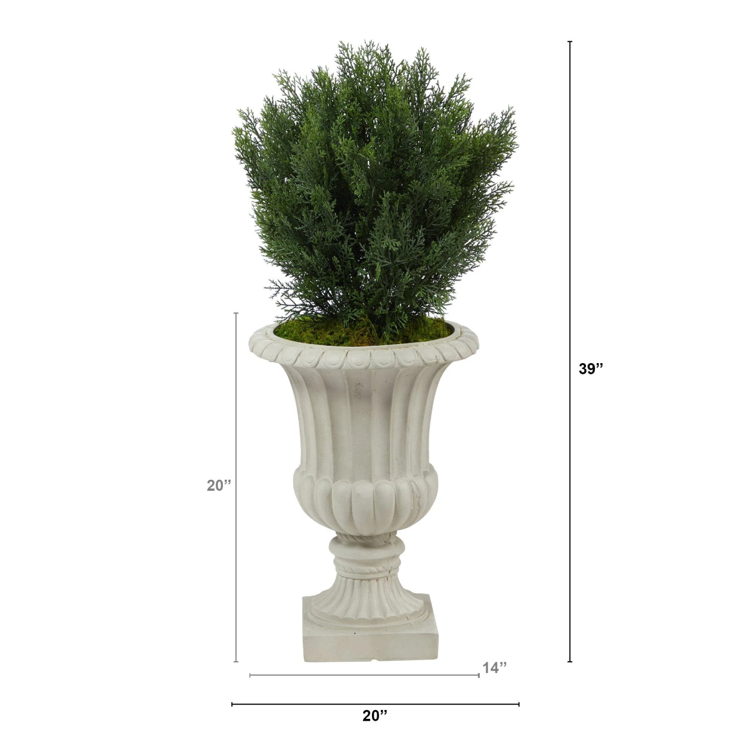 Bring the serenity of the outdoors to your space with this Cedar Artificial Tree. The green, bushy foliage creates a vertical focal point that complements many style decors. Recreate the look of a crisp, morning walk through a western national park. As an added layer of protection this faux tree is UV resistant, place outdoors safely. Standing 39″ from a sand finished urn, design in tight spaces that need a little greenery. Perfect for apartments, awkward corners, bedrooms, and foyers.