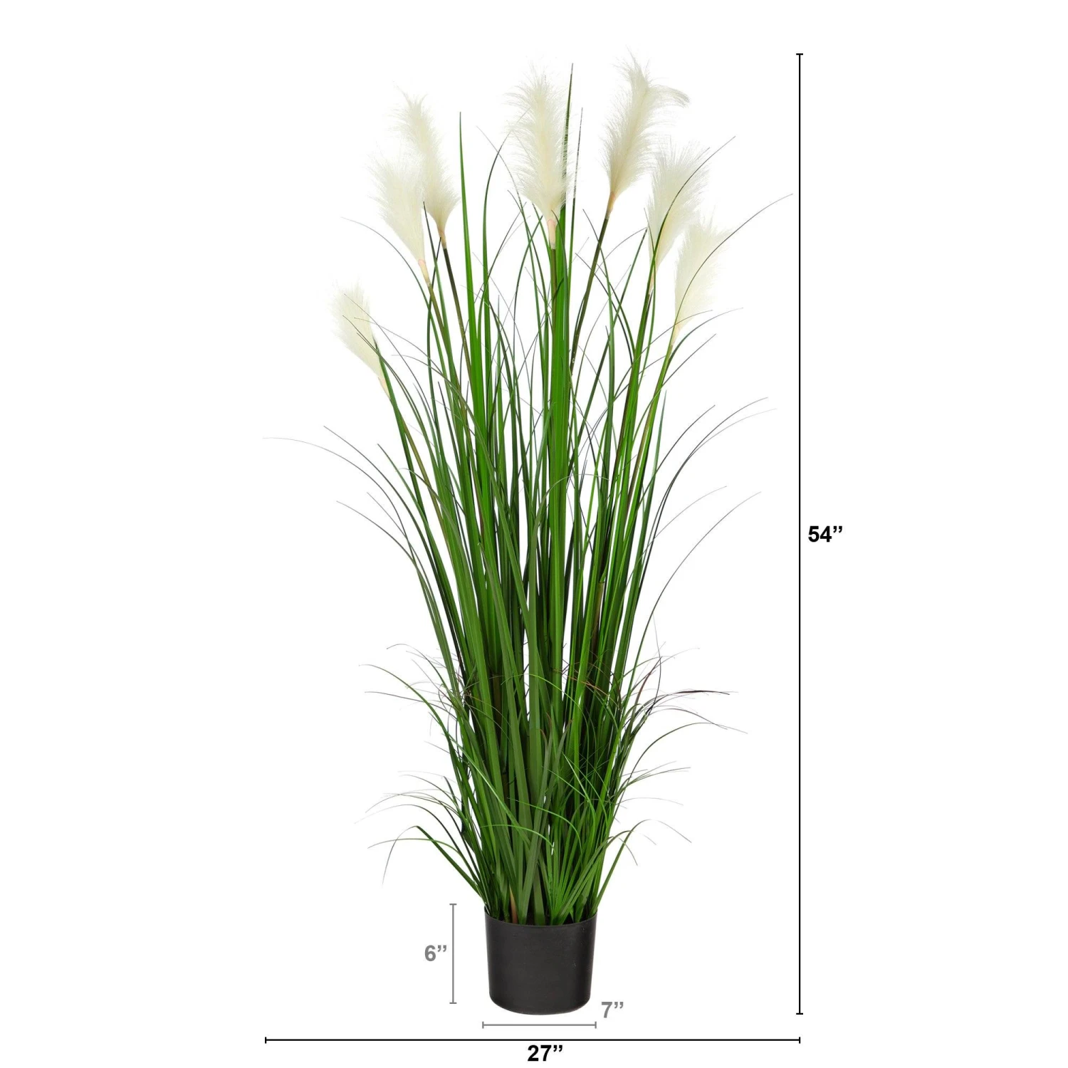 Enhance your space without the worry of upkeep with this Plum Artificial Grass Plant. Different sized grass blades form a fountain of green foliage that brings symmetry and lines to spaces in need of depth. To soften the look, yellowish textured plumes add a simple yet elegant touch. Standing 4.5′ from a nursery planter (included in height), curate in small spaces that need more life. Perfect for awkward corners, apartments, bathrooms, bedrooms, or foyers.