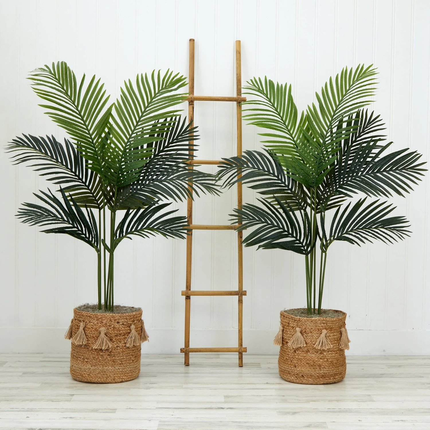 Enjoy the tropical hues in any room for an elevated yet coastal touch without the hassle of maintenance. Our handmade jute basket adds an organic and laid-back touch for a breezy beachy look without overdoing it. The tassels will remind you of the sand between your toes.