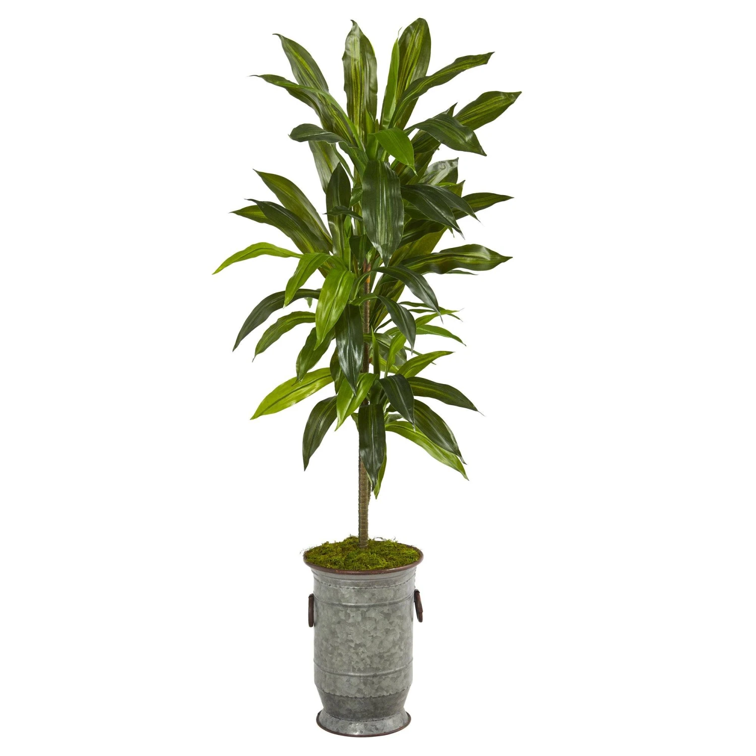 4’ Dracaena Artificial Plant In Vintage Metal Planter (Real Touch)