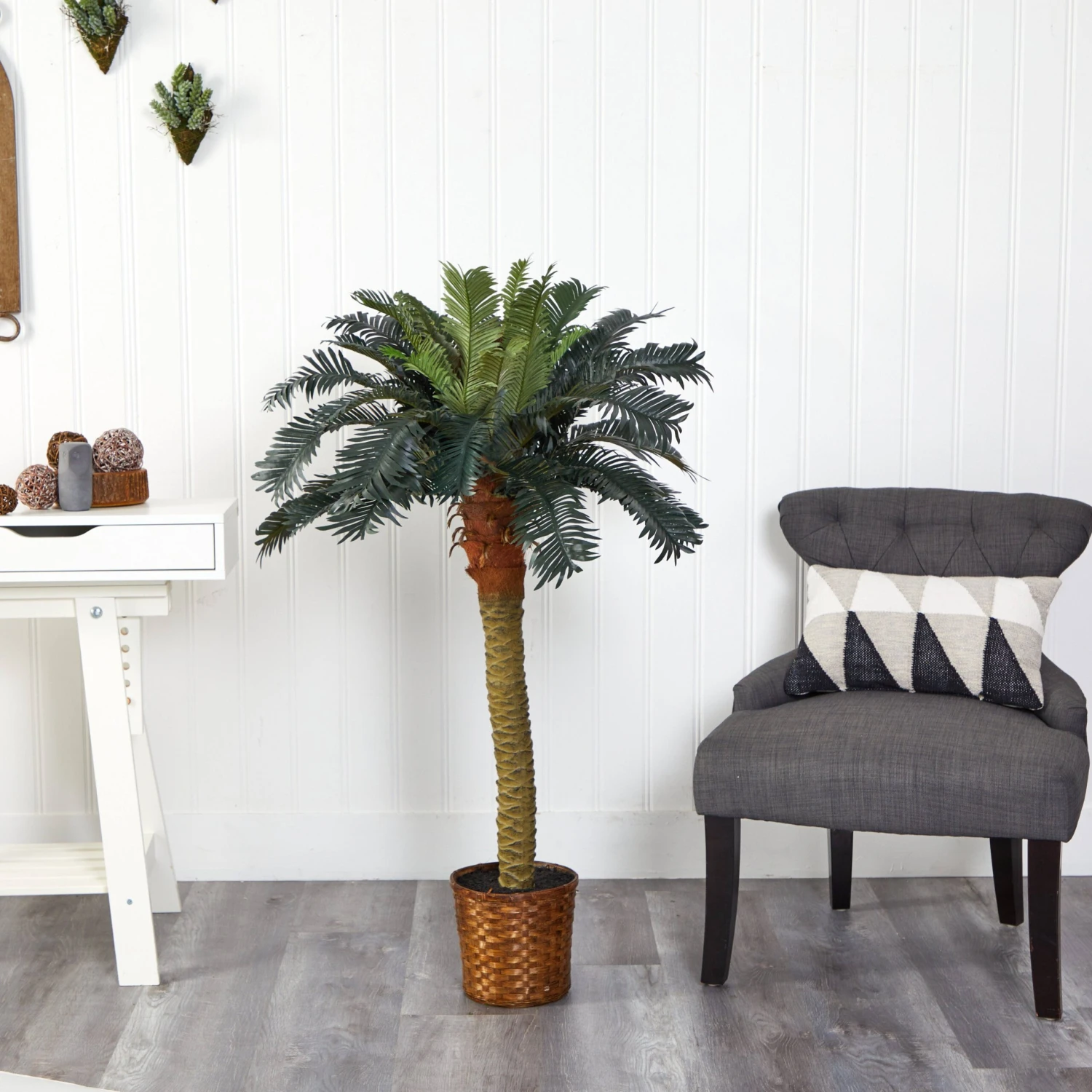 Standing a perky 4 feet tall this palm-like tree is a fabulous tropical accent for your home or office. Sizeable enough to liven up any space yet compact enough to fit any size room. Not a detail was missed, from its dark olive green leaves down to the sturdy spiny trunk. This tree is so natural, you may be tempted to water it.