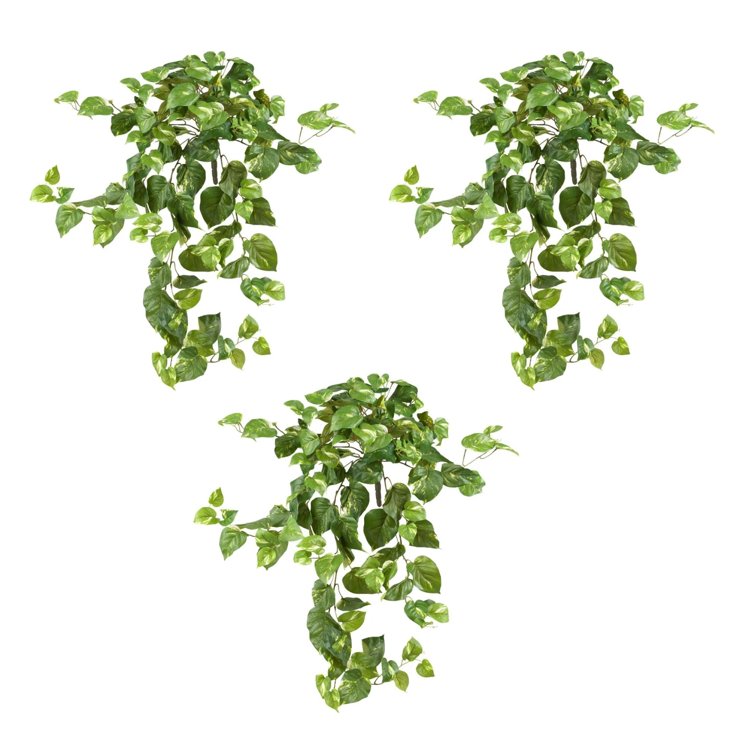 Light green with yellow variegated heart-shaped leaves flow freely from it’s hanging position. Pothos Hanging Bush is a luscious 40 inch waterfall of leaves. Place the climbing plant up on a high window sill, a vintage wardrobe, or above a kitchen cabinet.