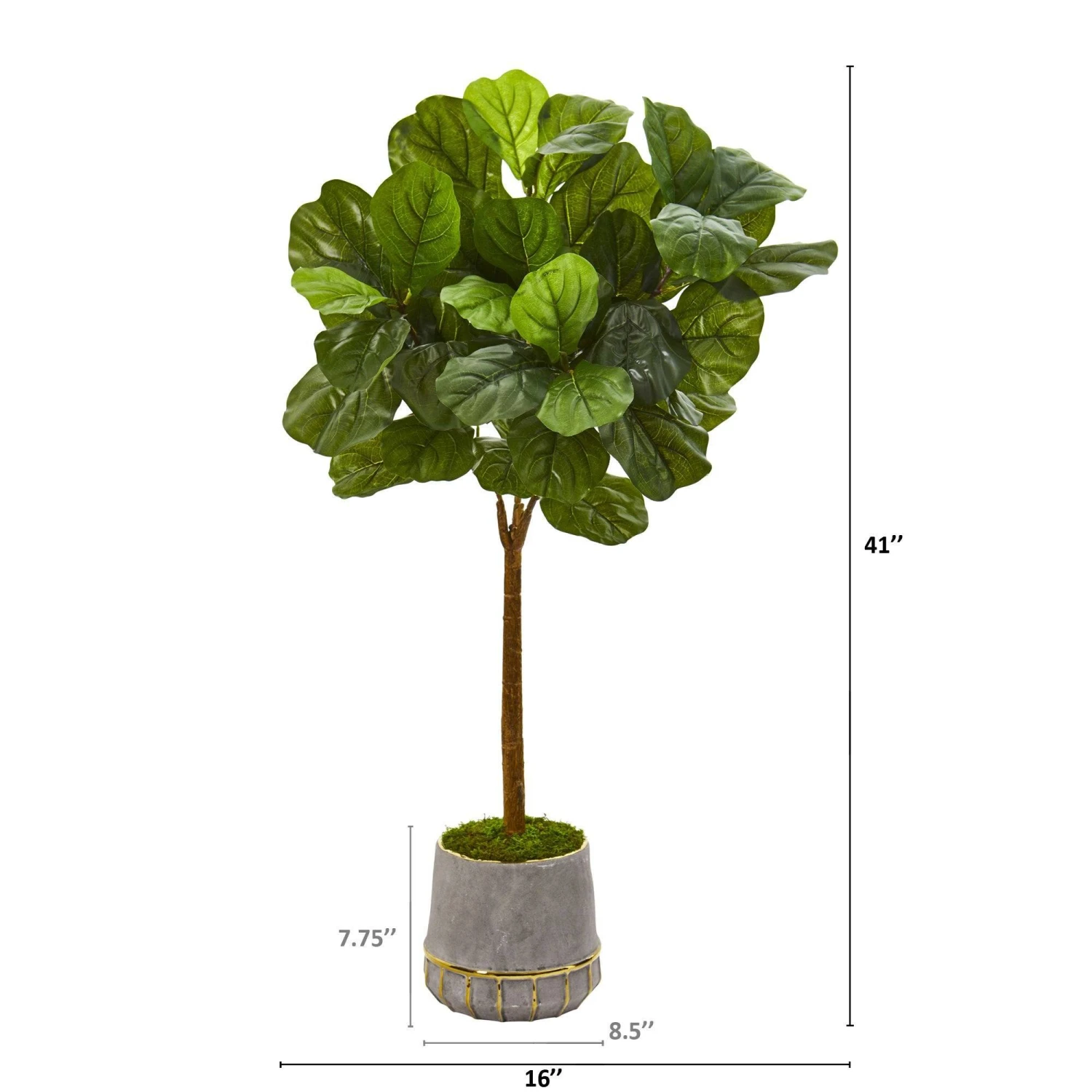 41” Fiddle Leaf Artificial Tree In Stoneware Planter With Gold Trimming (Real Touch)