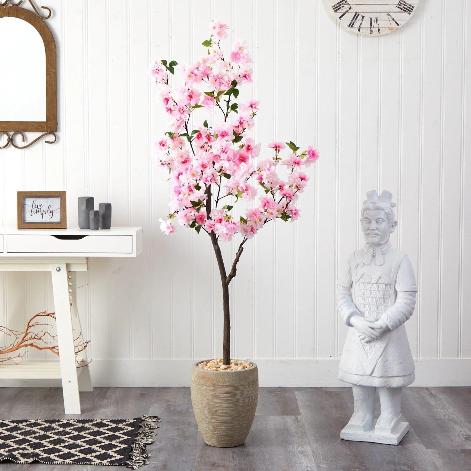 5.5’ Cherry Blossom Artificial Tree In Sand Colored Planter