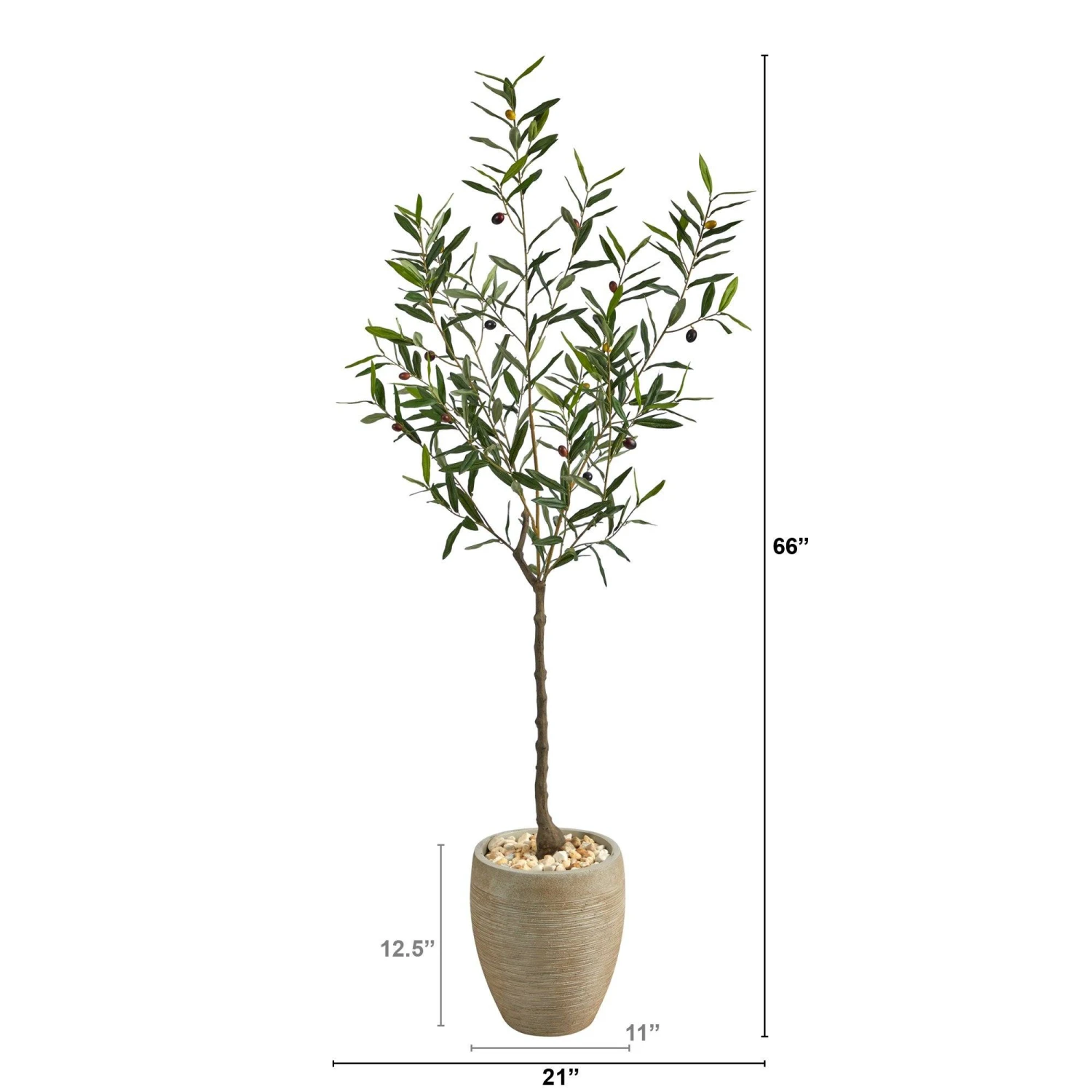 5.5’ Olive Artificial Tree In Sand Colored Planter