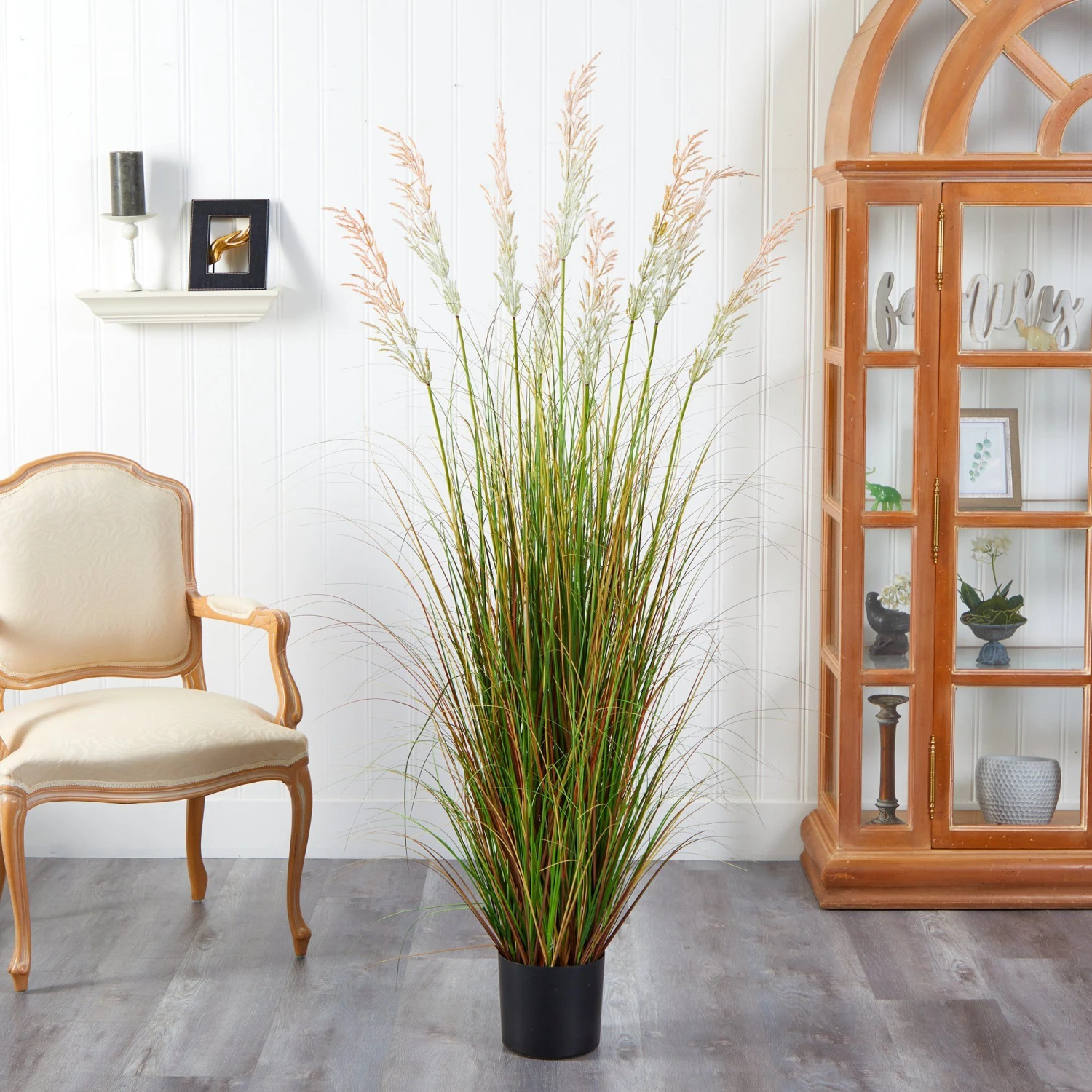Enhance your space without the worry of upkeep with this Plum Artificial Grass Plant. Different sized grass blades form a fountain of green foliage that brings symmetry and lines to spaces in need of depth. To soften the look, yellowish textured plumes add a simple yet elegant touch. Standing 5.5′ from a nursery planter (included in height), curate in small spaces that need more life. Perfect for awkward corners, apartments, bathrooms, bedrooms, or foyers.