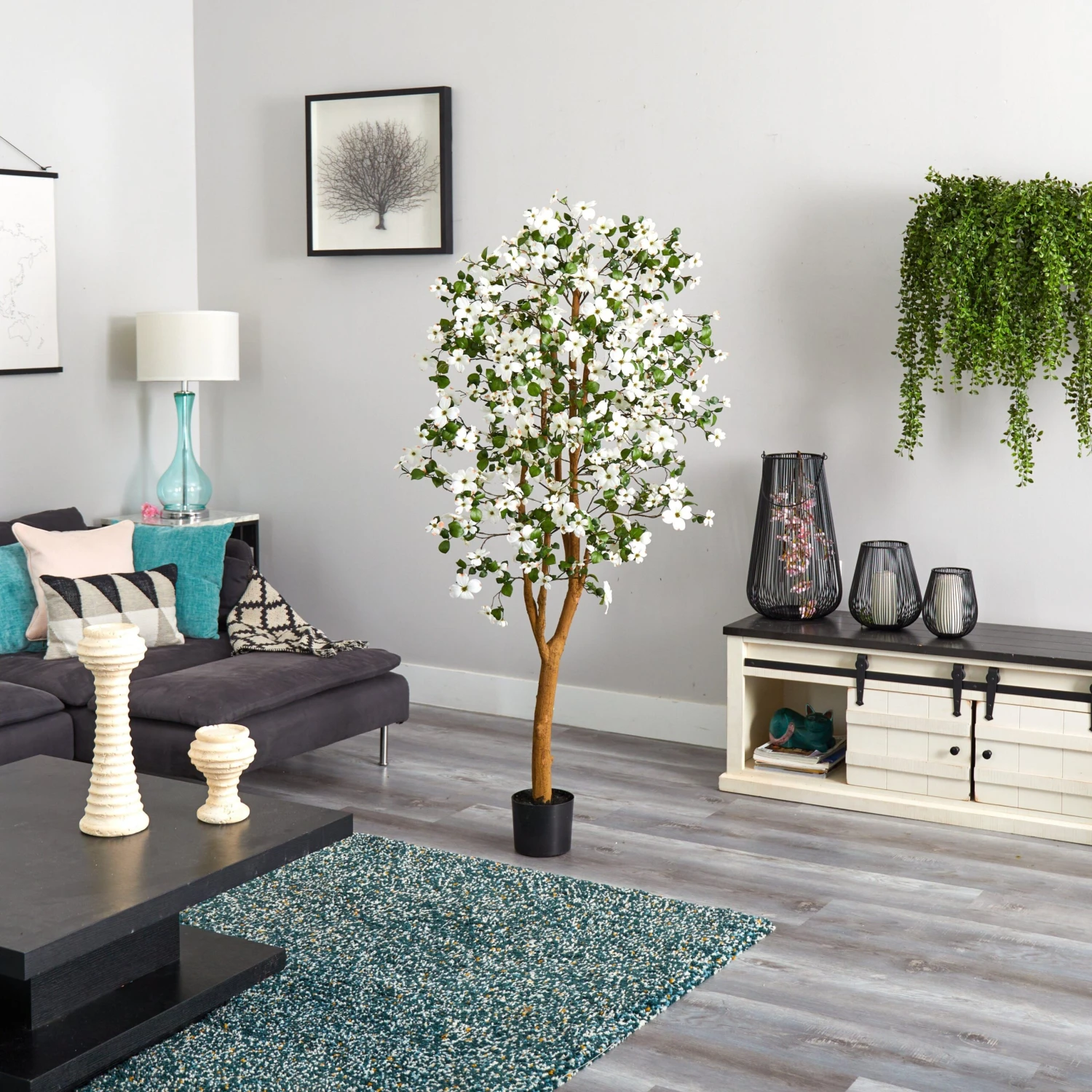 Bring the enchantment of the wonderful dogwood flower into your home. Our 5’ Dogwood Silk Tree starts with one center trunk that branches into a maze of 285 flowers surrounded by 1,140 leaves. It comes professionally arranged in a black plastic pot topped with moss. Color: White, Height: 5’, Flowers: 285, Leaves: 1,140