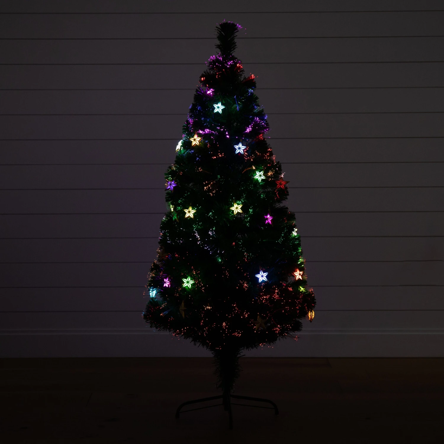 5′ Pre-Lit Fiber Optic Artificial Christmas Tree With 60 Colorful Star-Shaped LED Lights
