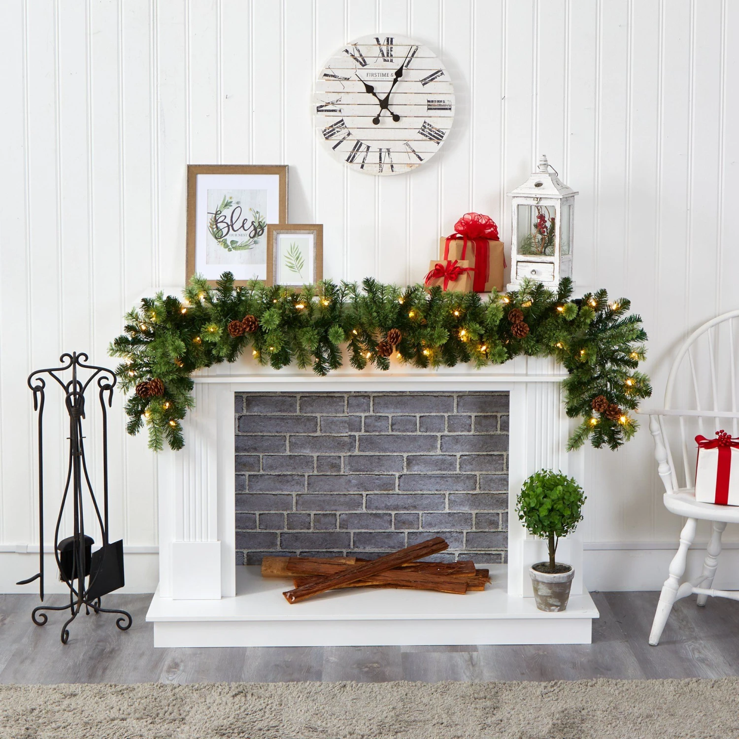 Complete your holiday decor scheme this Christmas with the help of this artificial winter garland, intricately designed from realistic looking seasonal evergreens, accented throughout with faux pinecones that look incredibly lifelike. Arriving pre-strung with 50 clear LED lights (battery operated) to add a soft, holiday glow to vertical surfaces, this 6’ long artificial garland will undoubtedly complete a traditional holiday setting for years to come.