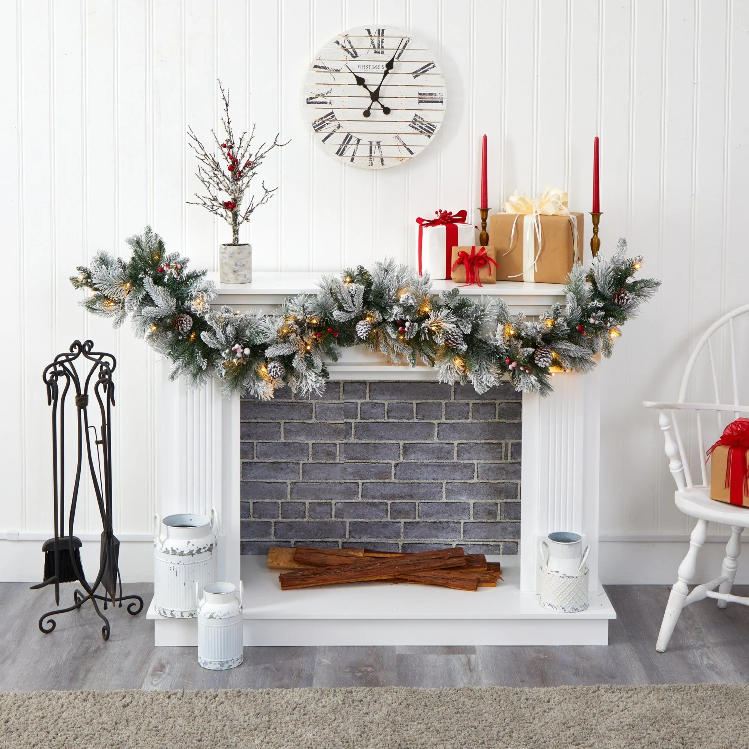 6’ Flocked Mixed Pine Artificial Christmas Garland With 50 LED Lights, Pine Cones And Berries