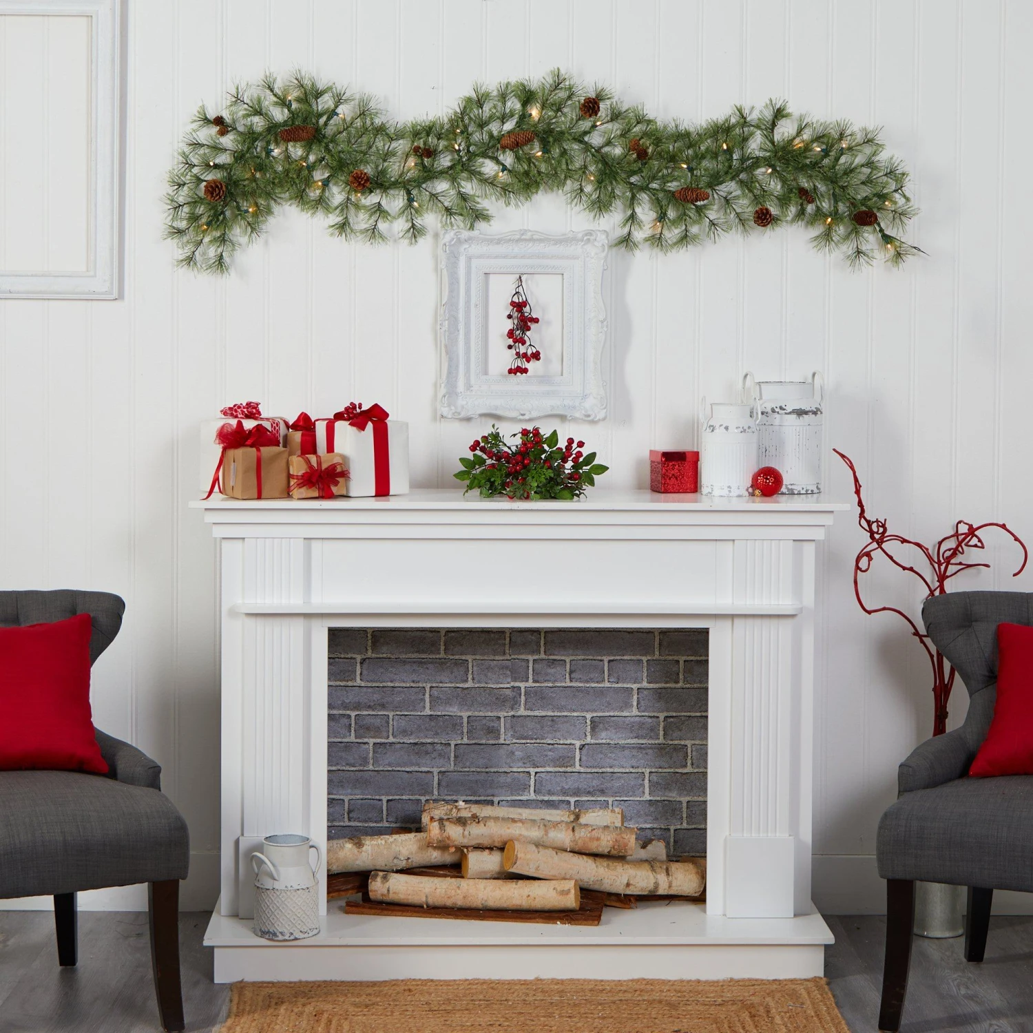 6′ North Carolina Pine Artificial Christmas Garland With 30 Warm White LED Lights And Pinecones