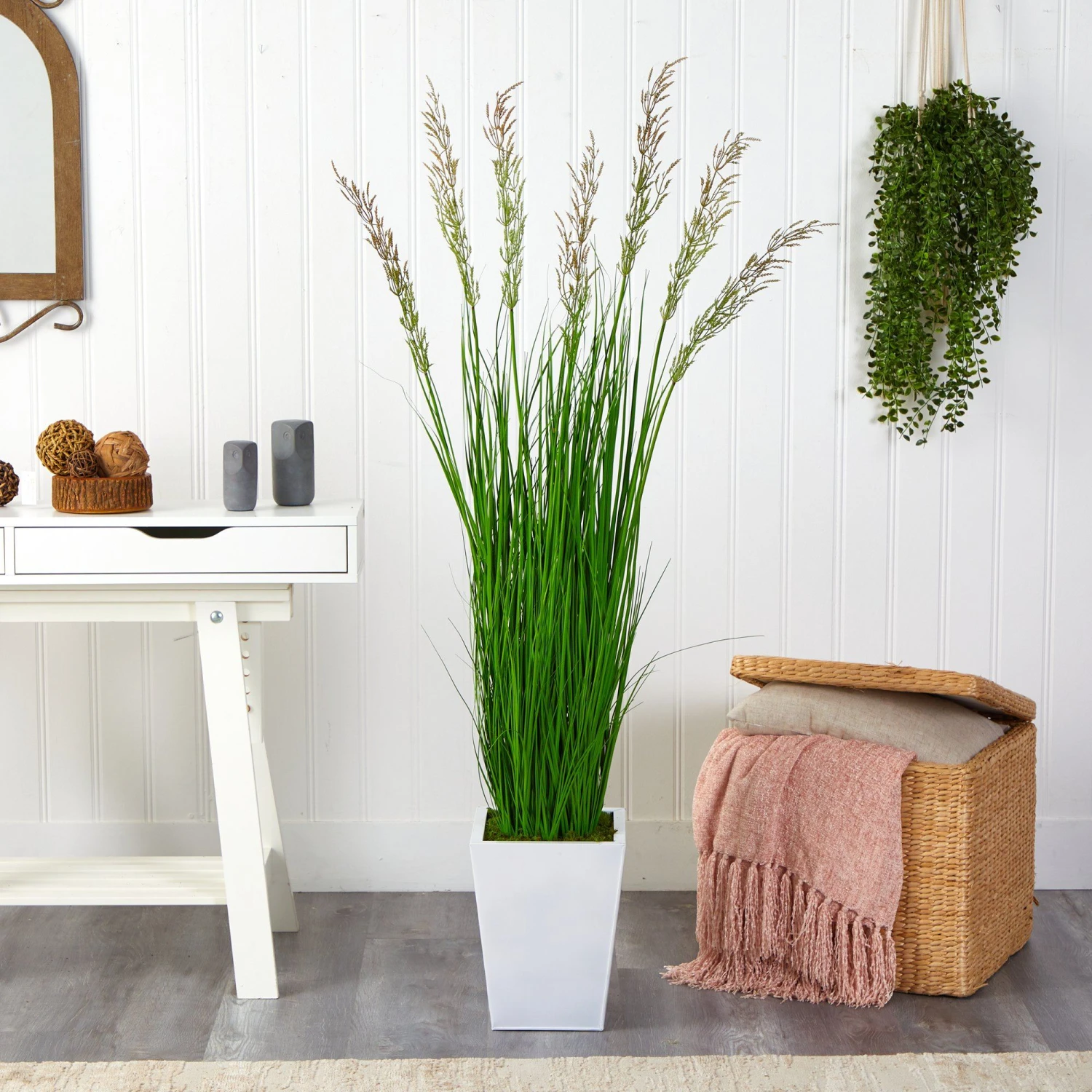 64” Wheat Grass Artificial Plant In White Metal Planter