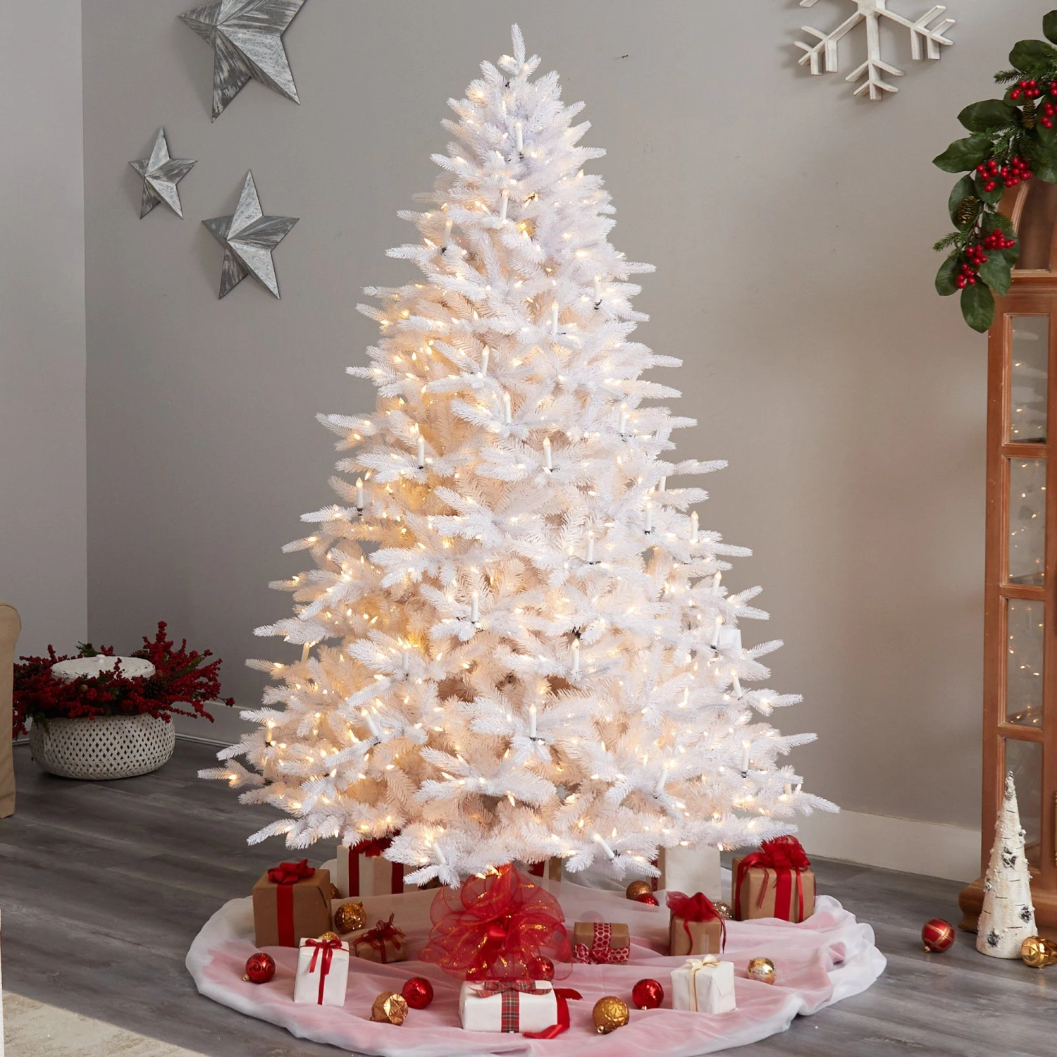 7.5′ Candle Lit White Artificial Christmas Tree With 900 LED “Candle Lights” And 1703 Bendable Branches