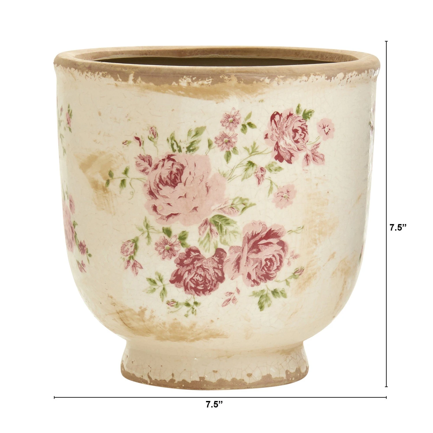 Arrange your fauxbolous flowers in this floral design planter (set of 1). The vintage ceramic planter has a homey feel with its palette of pinkish flowers against a rugged backdrop. DIY and have fun mix-matching for a country chic look that delivers that fresh farm to home style. No drainage holes and indoor use only.