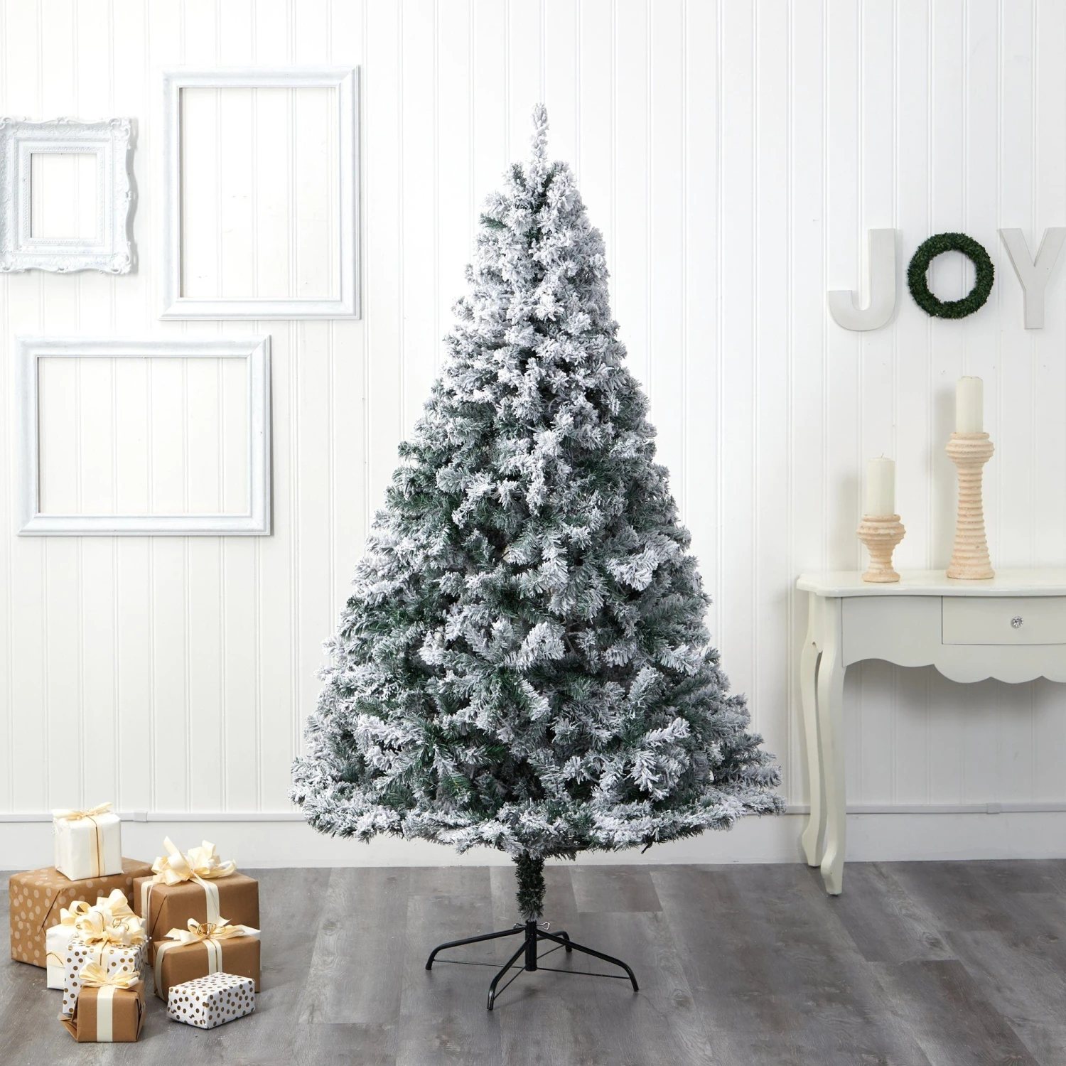 7′ Flocked Rock Springs Spruce Artificial Christmas Tree With 800 Bendable Branches