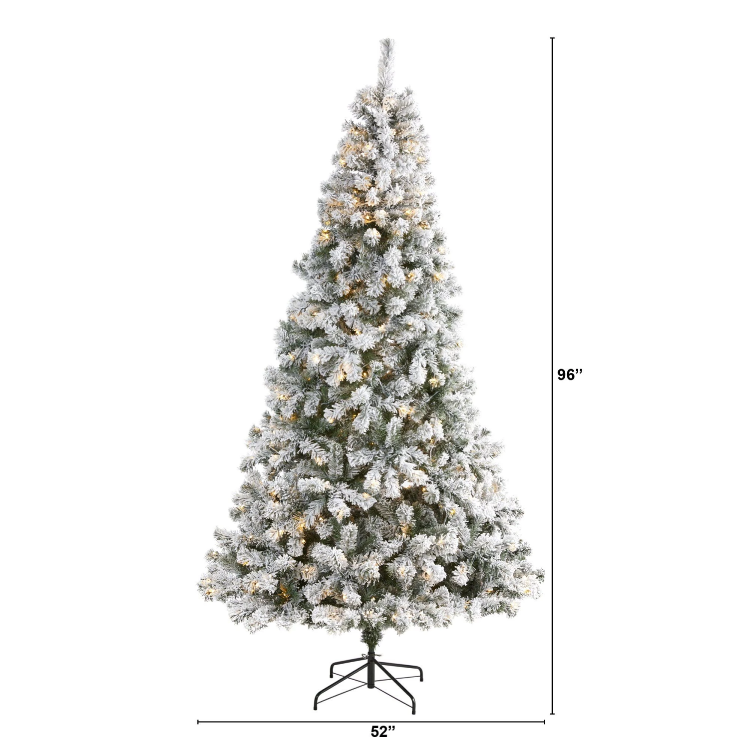 8′ Flocked West Virginia Fir Artificial Christmas Tree With 500 Clear LED Lights