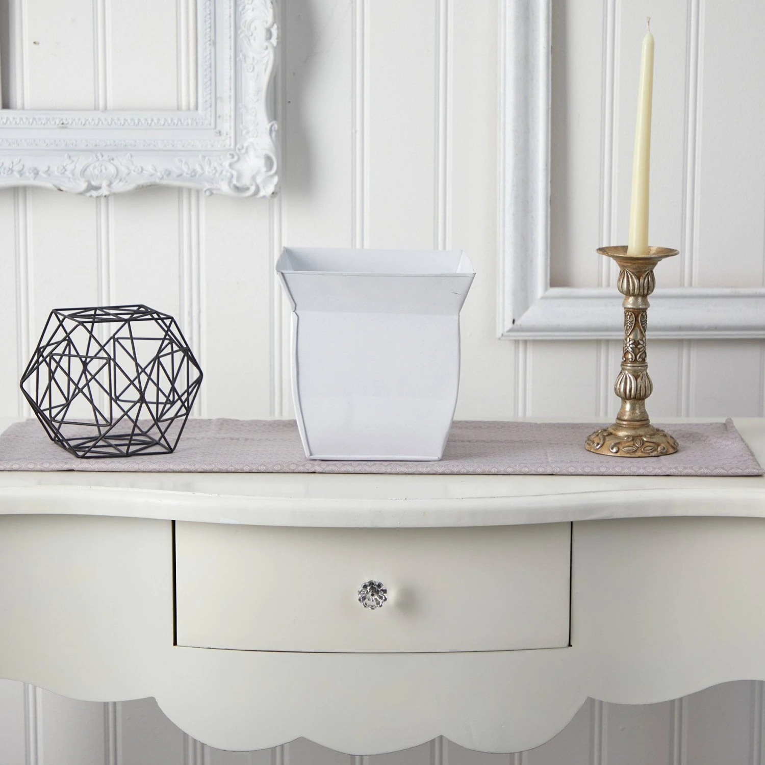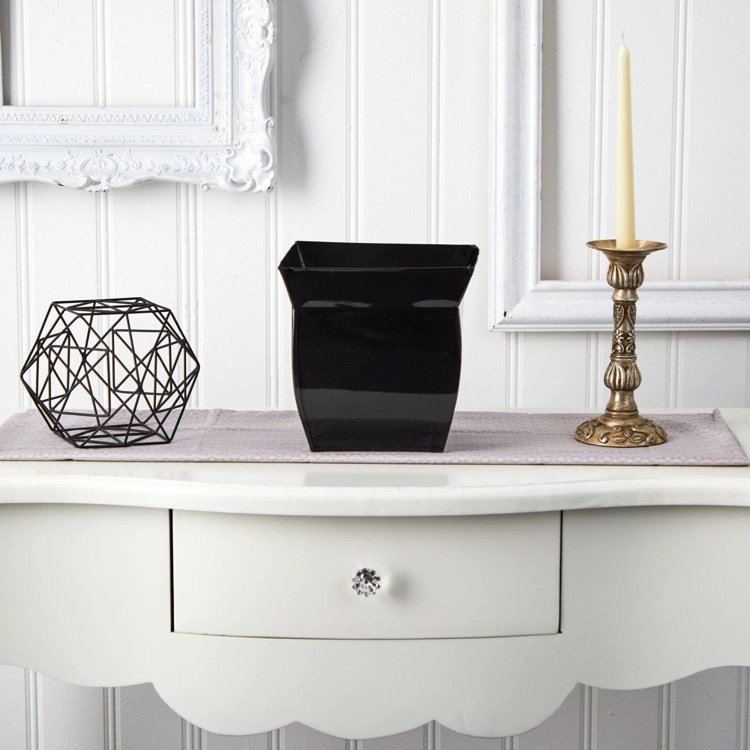 Enhance your home with a metal patterned planter. This chic geometric pot will add texture, depth and color to any space that needs an elegant touch. House your favorite Fiddle, Ficus, or Palm tree for an updated, modern look. Standing 8″, modernize any space in need of some greenery. Add to a dining room, kitchen or bedroom.