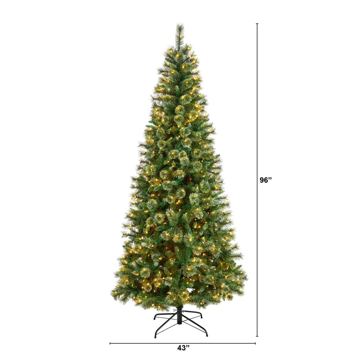 8’ Wisconsin Slim Snow Tip Pine Christmas Tree With 600 Clear LED Lights And 908 Bendable Branches
