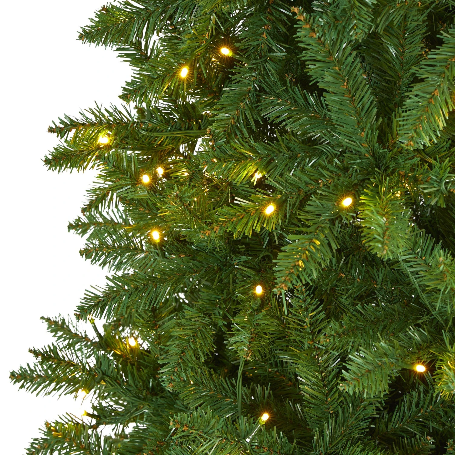 9’ Slim Green Mountain Pine Artificial Christmas Tree With 600 Clear LED Lights