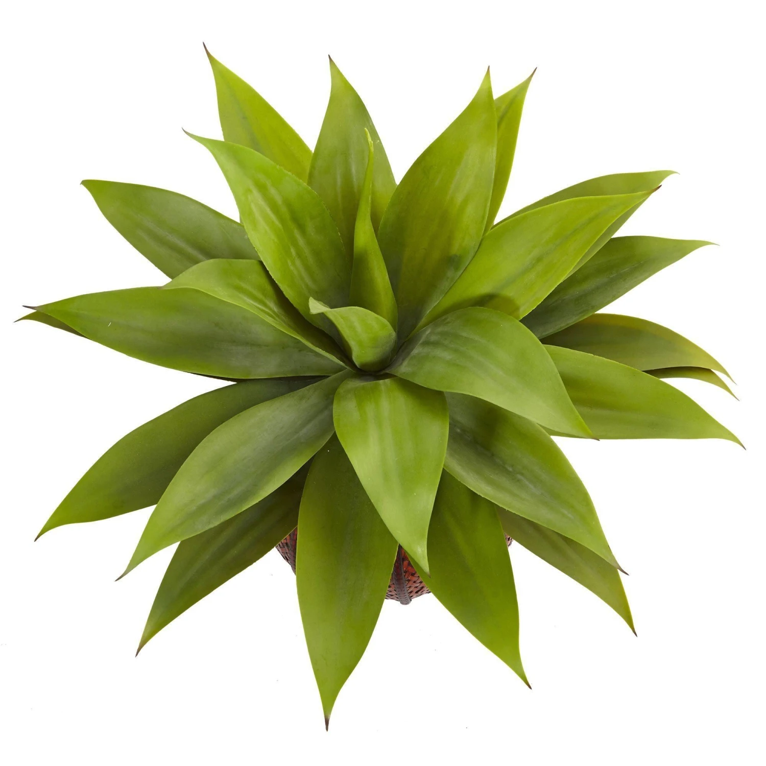 The included brown woven planter gives this realistic agave an almost tropical feel. Its thick green leaves would fit in splendidly among outdoor furniture or on your deck, and the quality craftsmanship and fine materials will keep it looking lovely in your living space. You can also add it to your sunroom, living room, or anywhere you want to cleanly bring a bit of the outdoors inside.