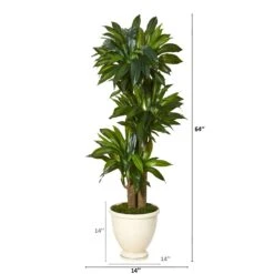 64” Corn Stalk Dracaena Artificial Plant In Urn Planter (Real Touch)