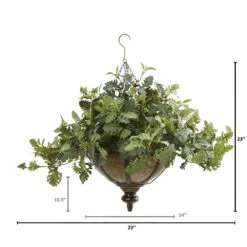 26” Variegated Holly Artificial Plant In Hanging Basket (Real Touch)