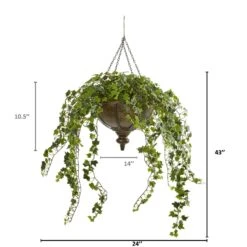 45” Ivy And Mix Greens Artificial Plant In Hanging Metal Bowl