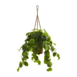 34” Peperomia Artificial Plant In Hanging Basket (Real Touch)