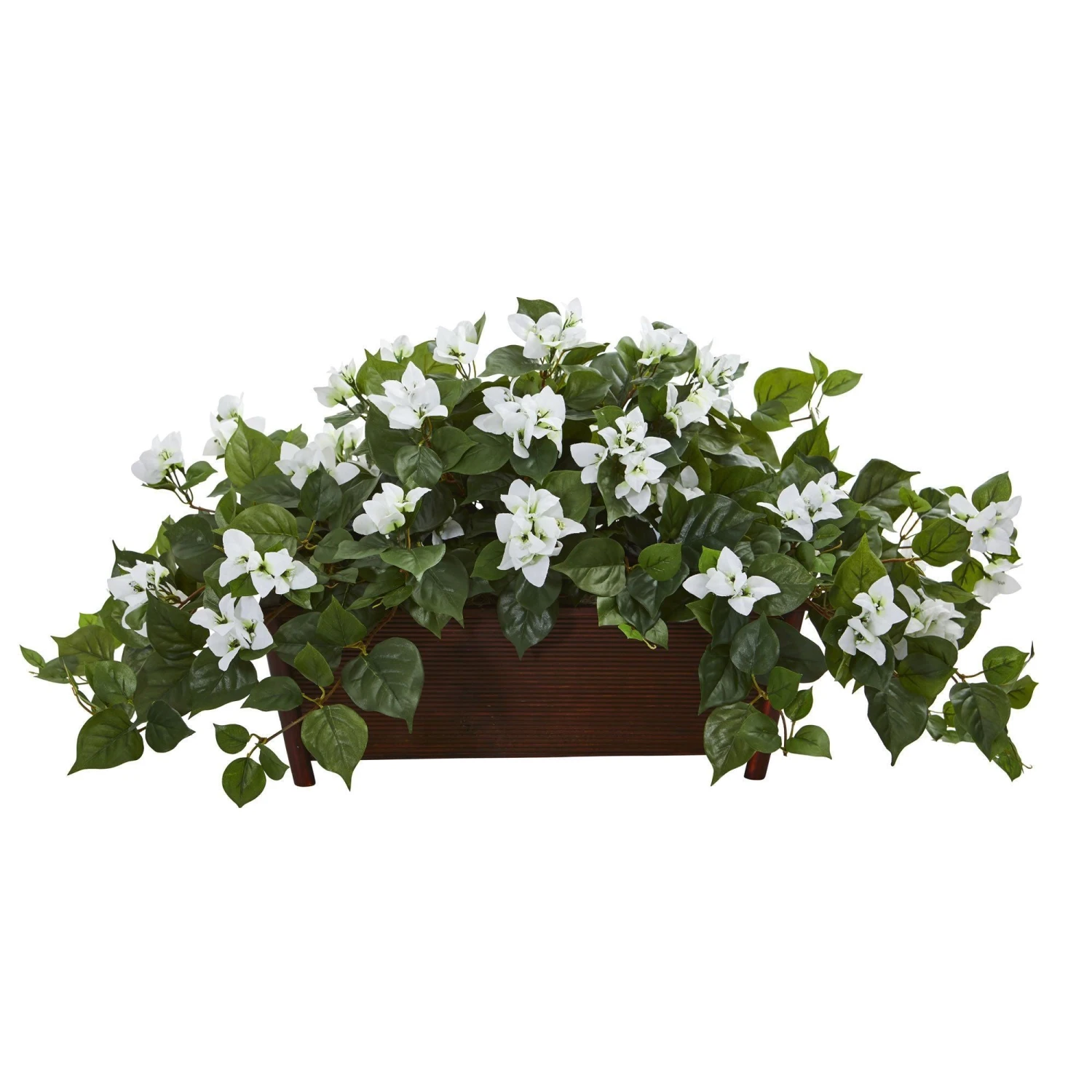 Bring the bright and cheerful appearance of this bougainvillea artificial plant to your space. Its vibrant pink blooms and thick green leaves are bursting out of the included planter and nearly touching the ground, creating a stunning and realistic display. At only 18 inches tall, this bougainvillea artificial plant is perfect for your end table or kitchen counter. Pair it with other artificial plants to create a lovely indoor garden.