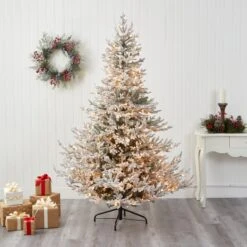 9’ Flocked Grand Alpine Artificial Christmas Tree With 600 Lights And 1183 Branches On Natural Trunk