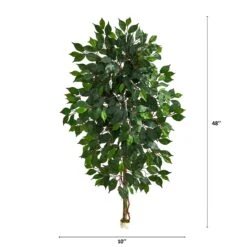 4’ Ficus Artificial Tree In Boho Chic Handmade Natural Cotton Woven Planter With Tassels