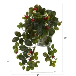 13” Strawberry Artificial Plant In Vintage Hanging Metal Planter