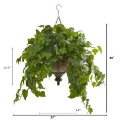 45” Ivy And Mix Greens Artificial Plant In Hanging Metal Bowl