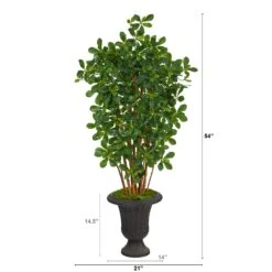4.5′ Artificial Olive Double Topiary With Handmade Jute & Cotton Basket With Tassels